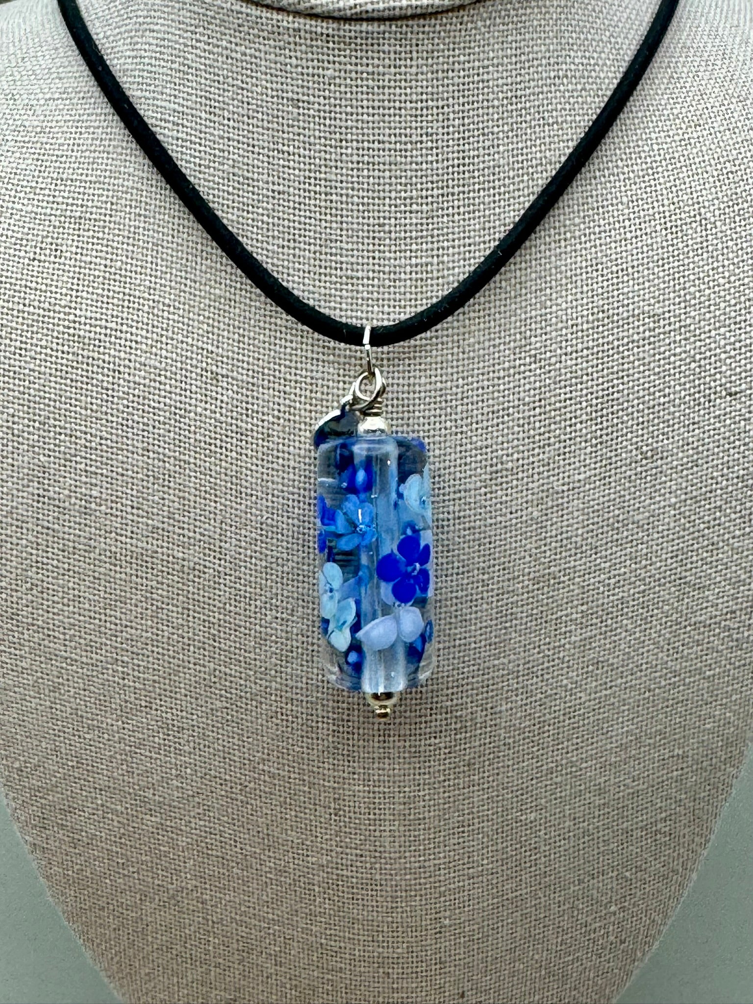 The perfect antidote for blue Mondays. Handmade glass bead on an 18" silicone cord. No exposed clasp, so it's allergy friendly!